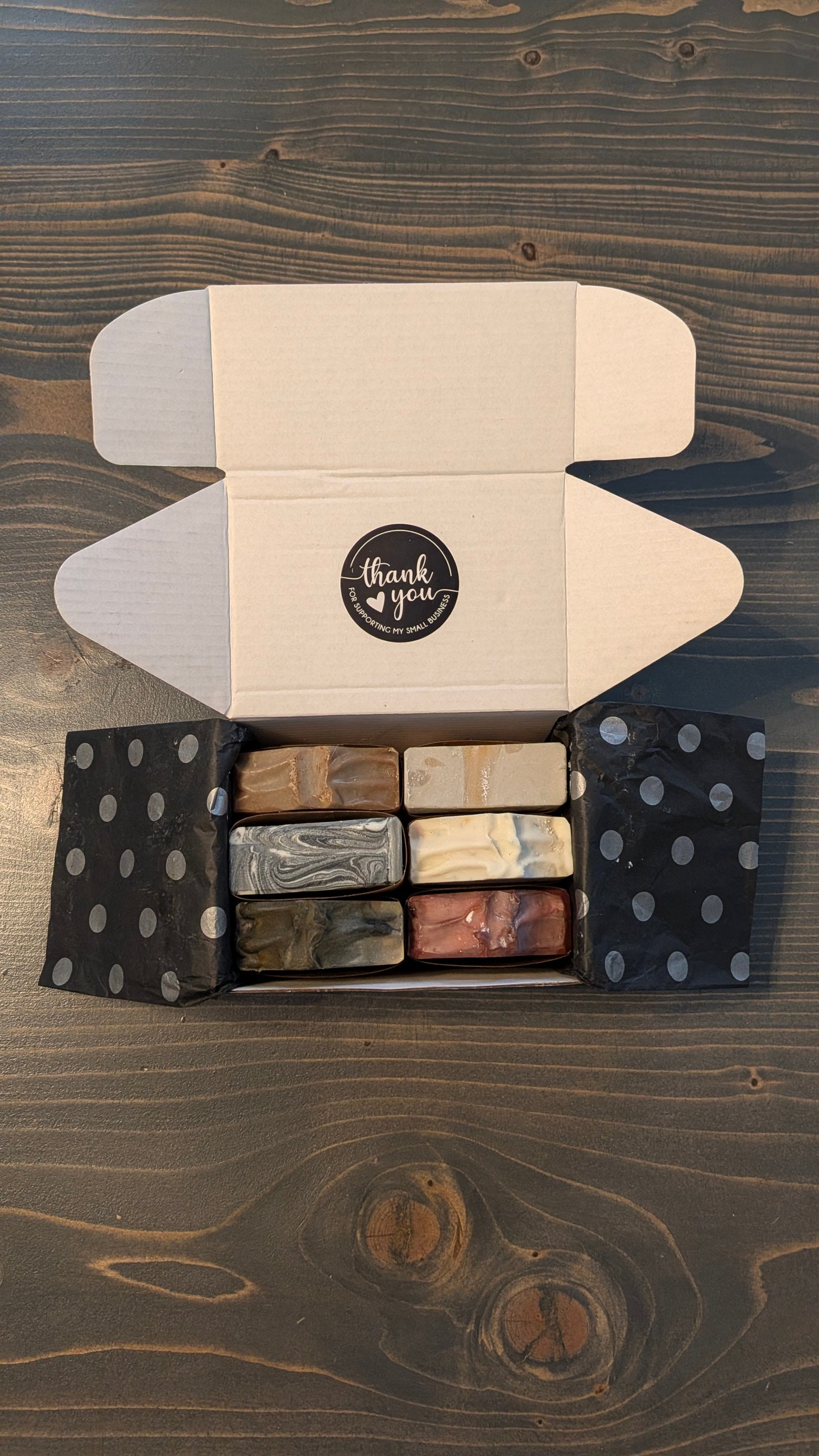 Pick any 6 handcrafted soaps and save $6 compared to buying them individually.